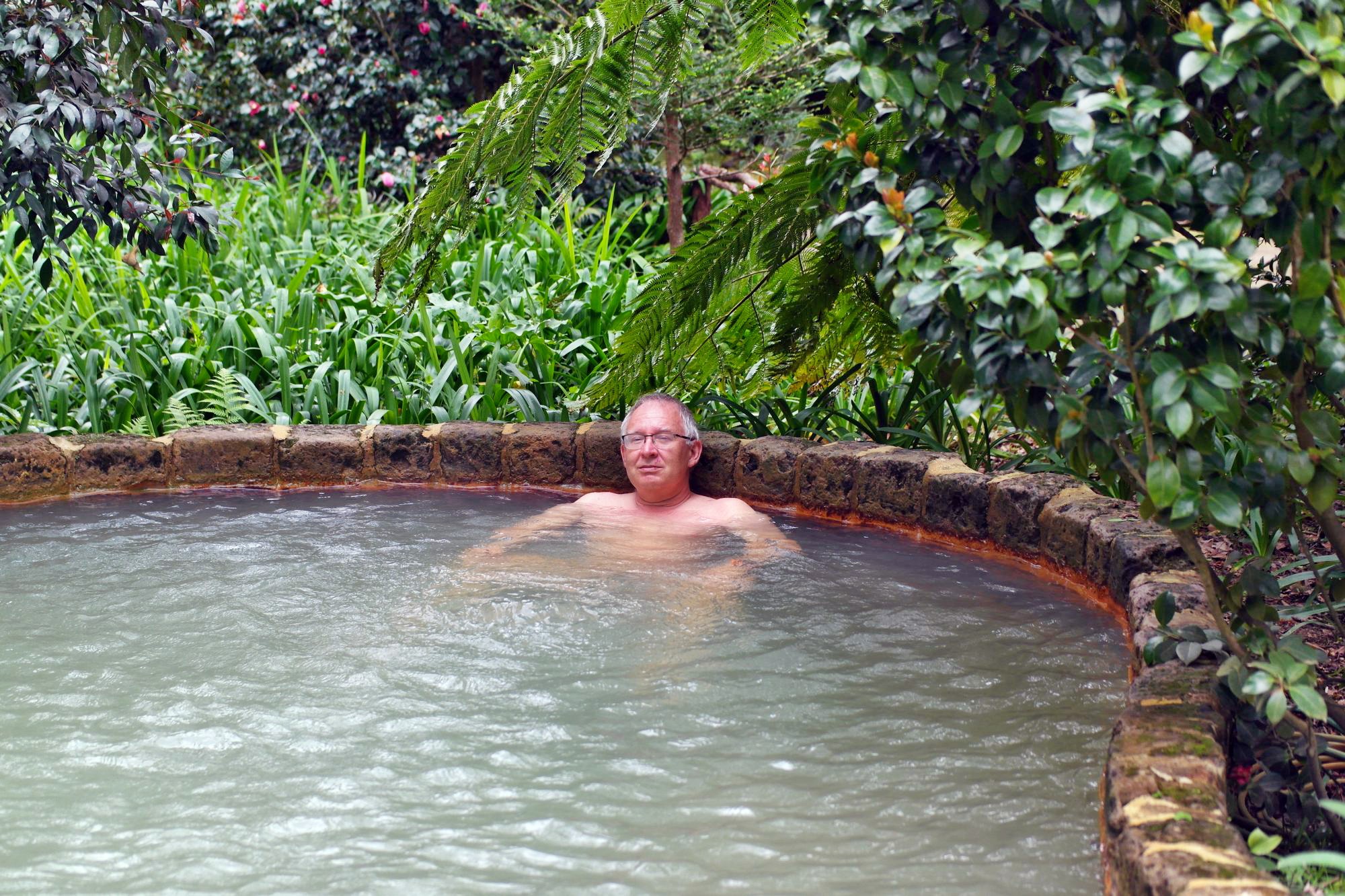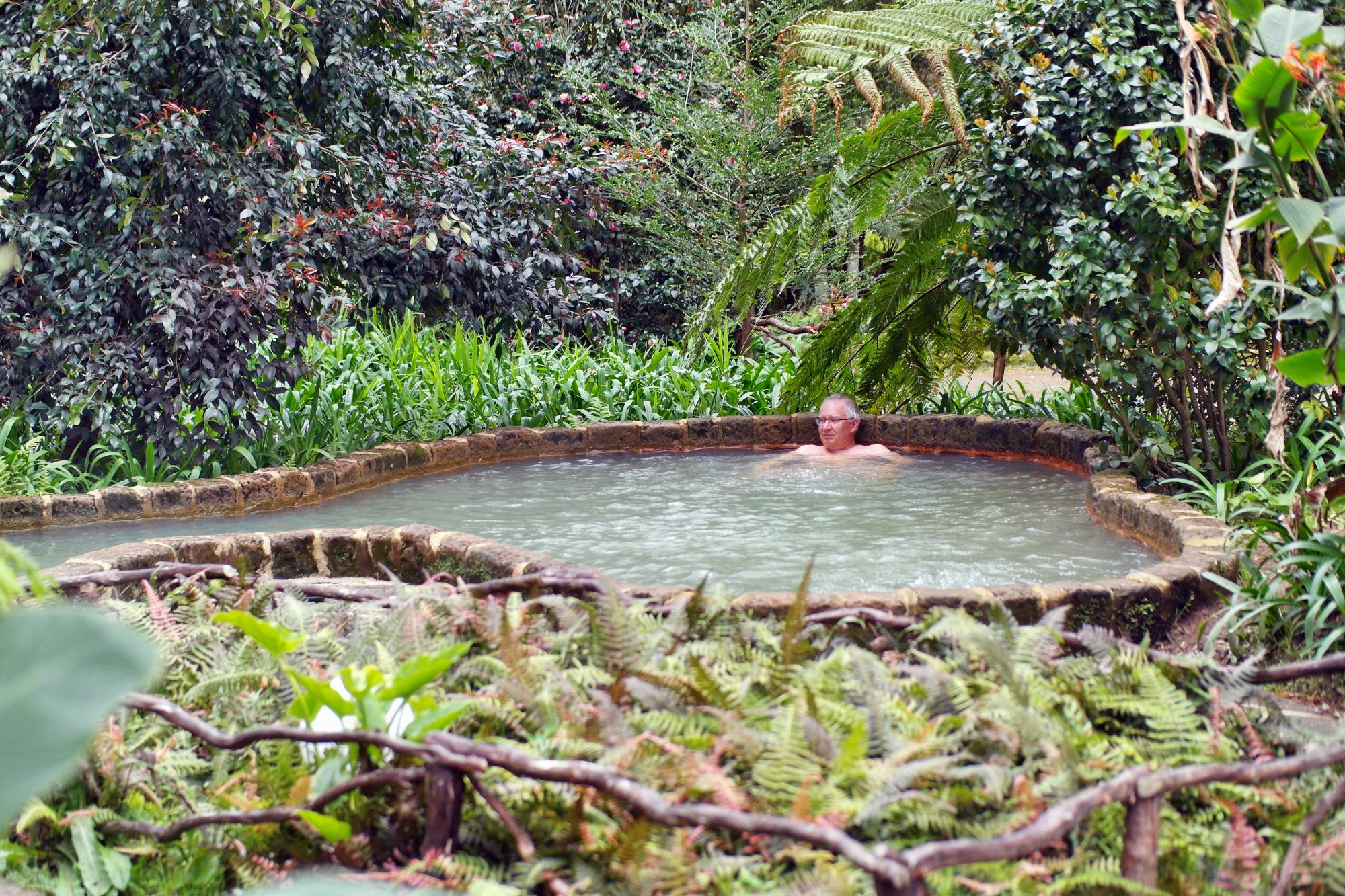 Im morgendlichen Nieselregen um den Furnassee gelaufen, dann weiter den Terra nostra Park erforscht: wie ein Freiluftpalmenhaus! Mit versteckten Thermalpools, die haben wir um diese Zeit noch fast für uns alleine.