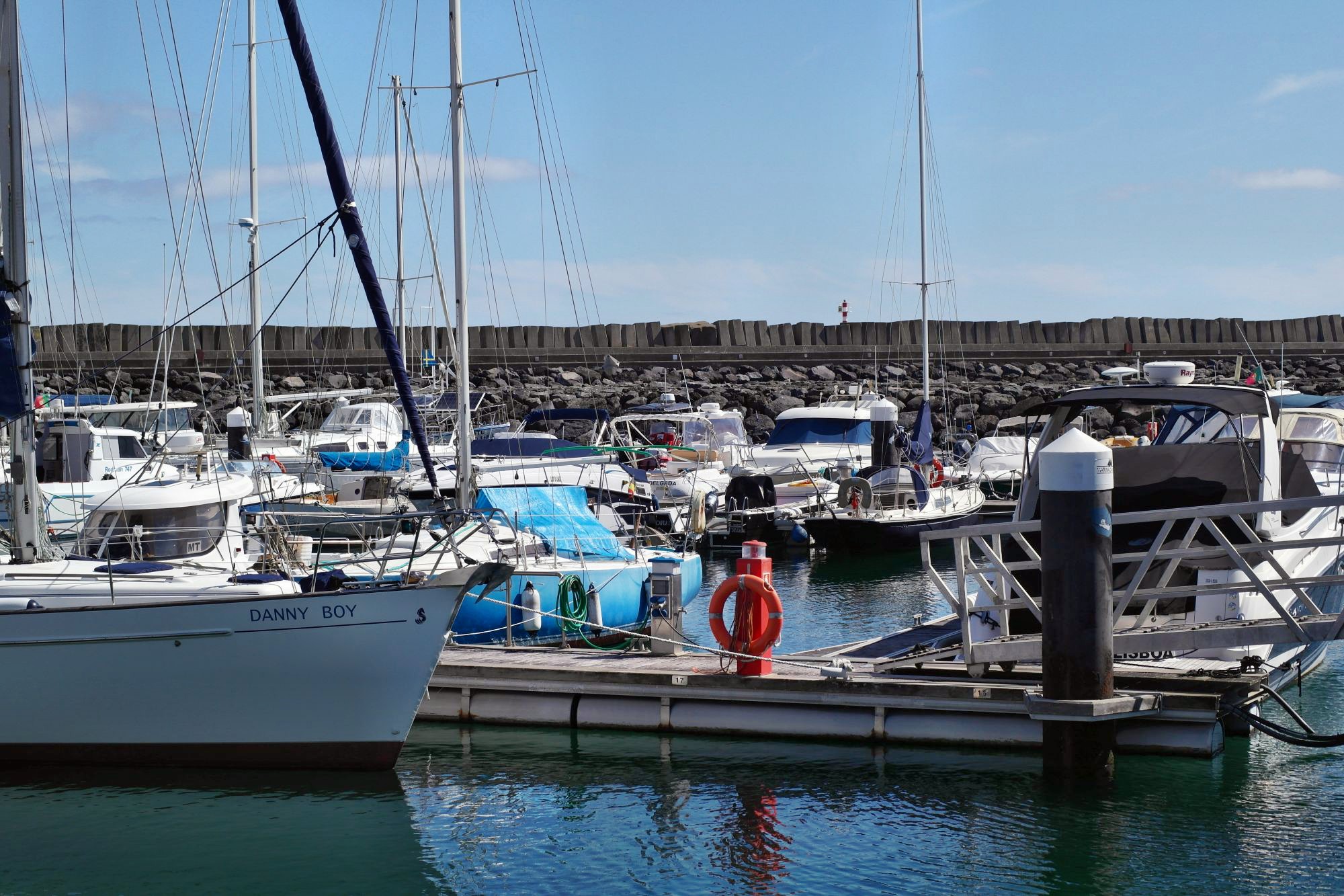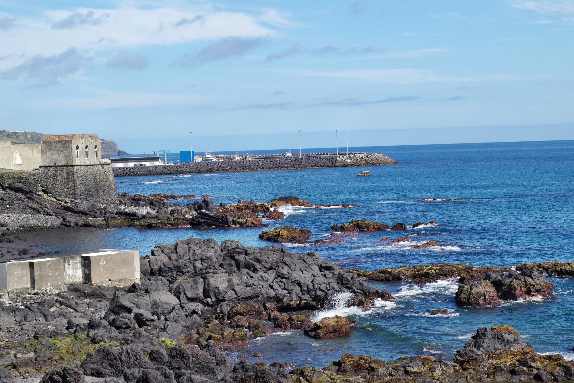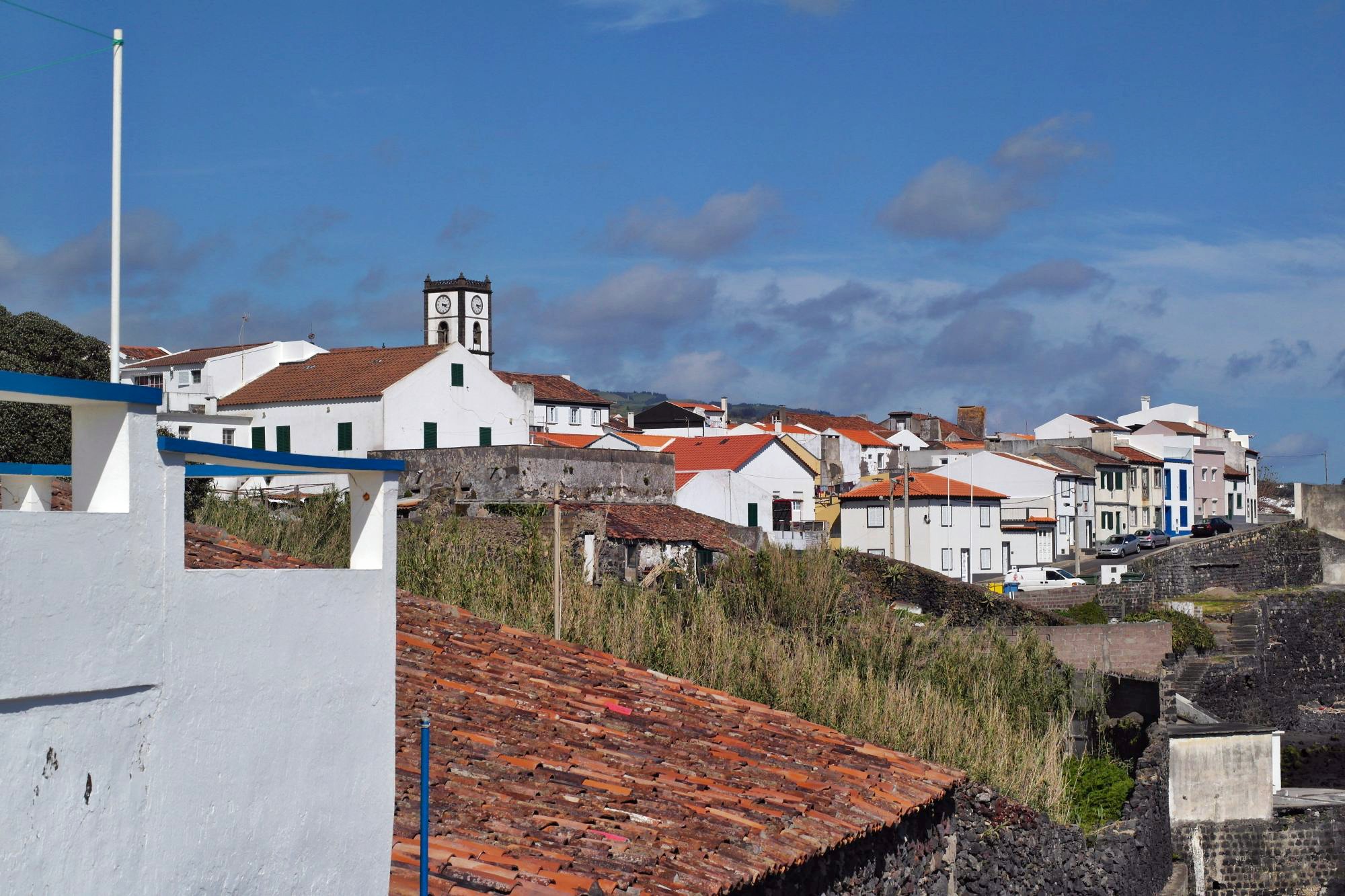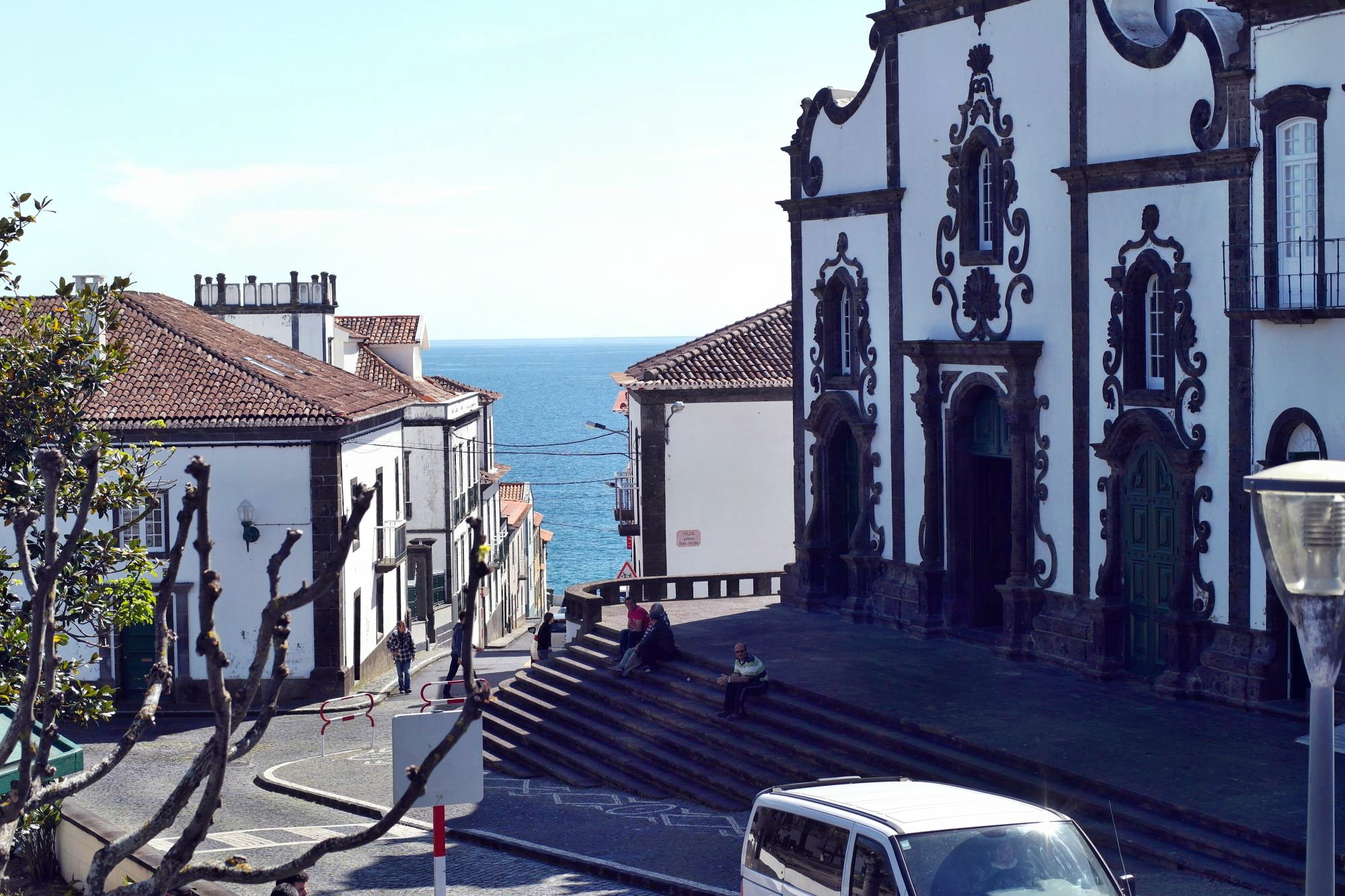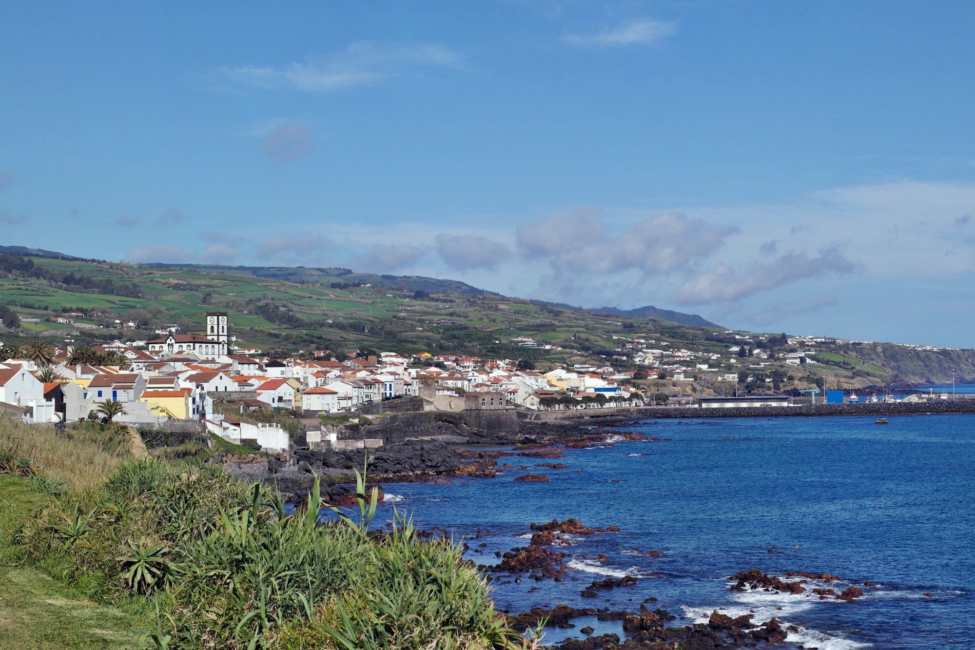 Dann am Nachmittag eine Fahrt ins Blaue, der Sonne entgegen. Vila Franka do Campo zeigt sich von seiner besten Seite, 23°, ruhige See und blauer Himmel. Fast bereuen wir nicht doch noch die kurzen Hosen ausgepackt zu haben. Eine hübsche Altstadt, Kirchen und Klöster, traditionelle Handwerksbetriebe und ein sicherer Hafen mit Marina und Hafencafe, ja sogar die Hunde sind an der Leine – wir erklären das Kaff zu unserem Lieblingsort auf Sao Miguel. Die lokale Spezialität heißt hier Queijada, ist wie immer sehr süß, fett und lecker.